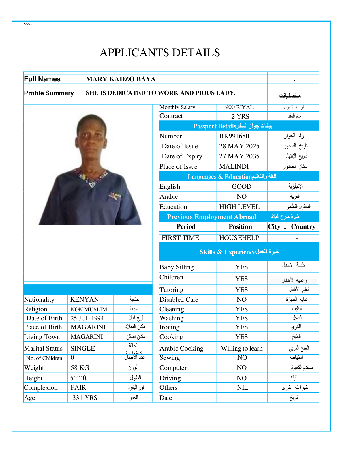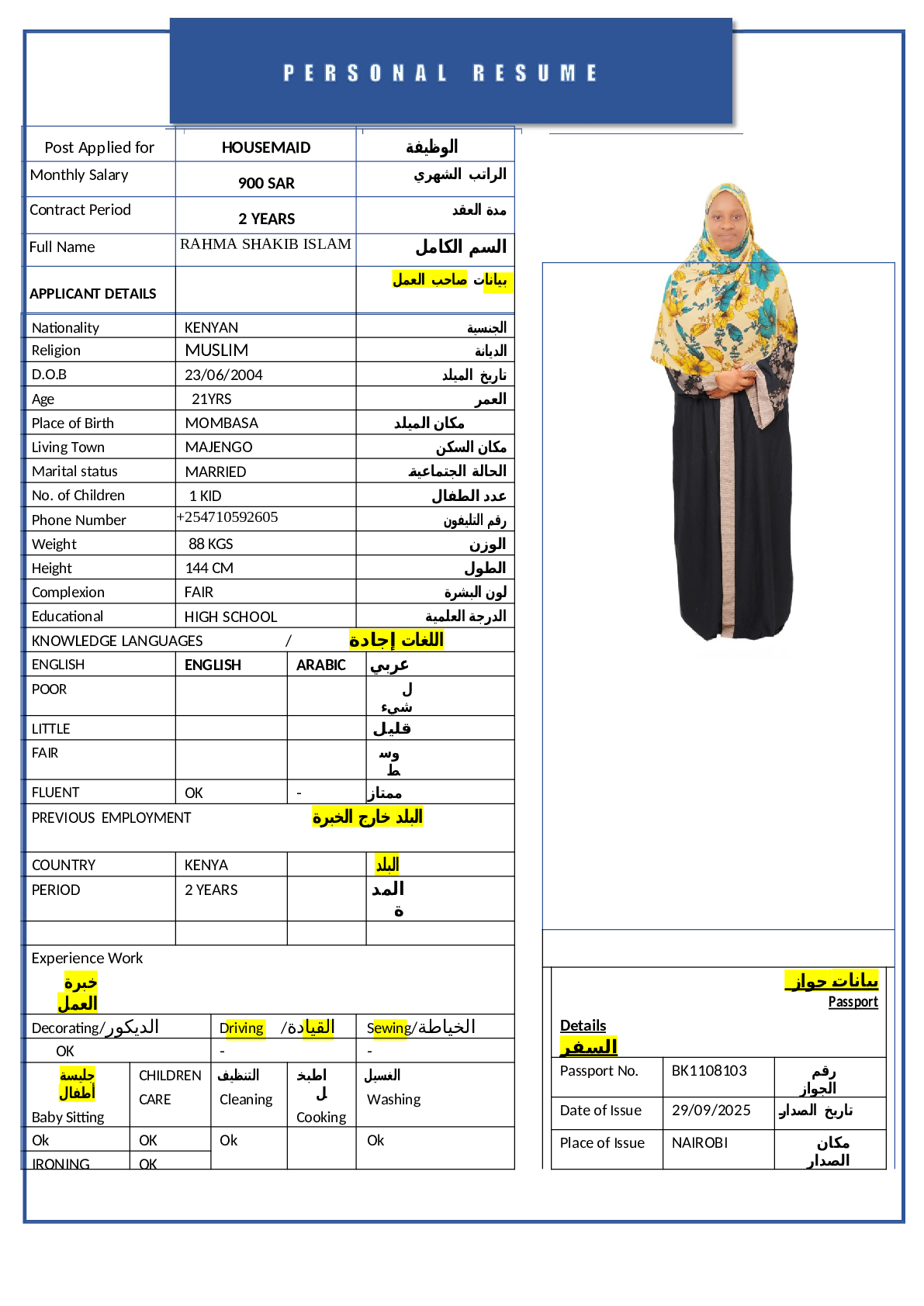 عاملة منزلية