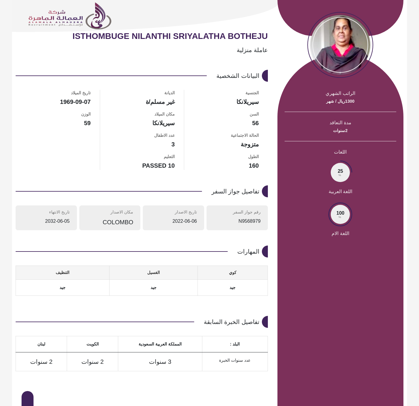 عاملة منزلية