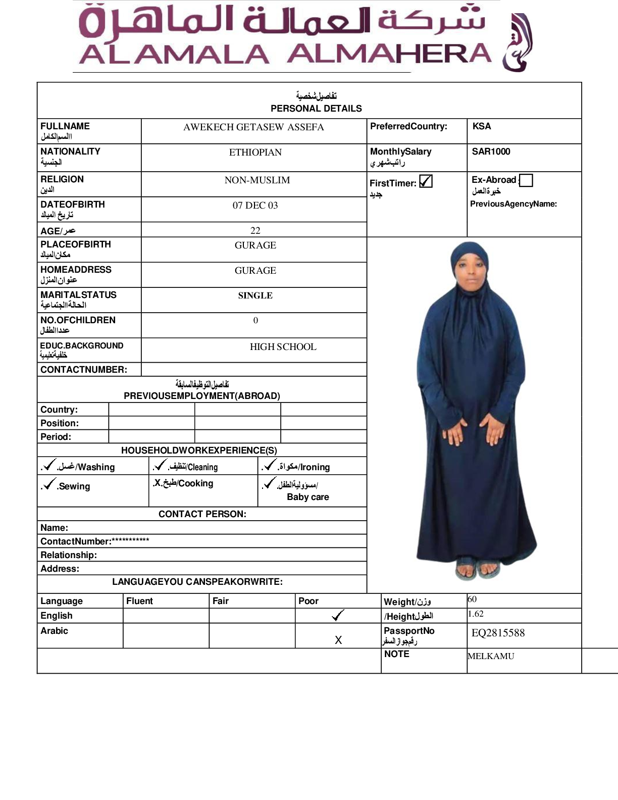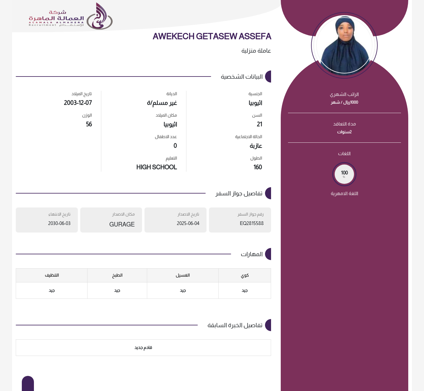 عاملة منزلية