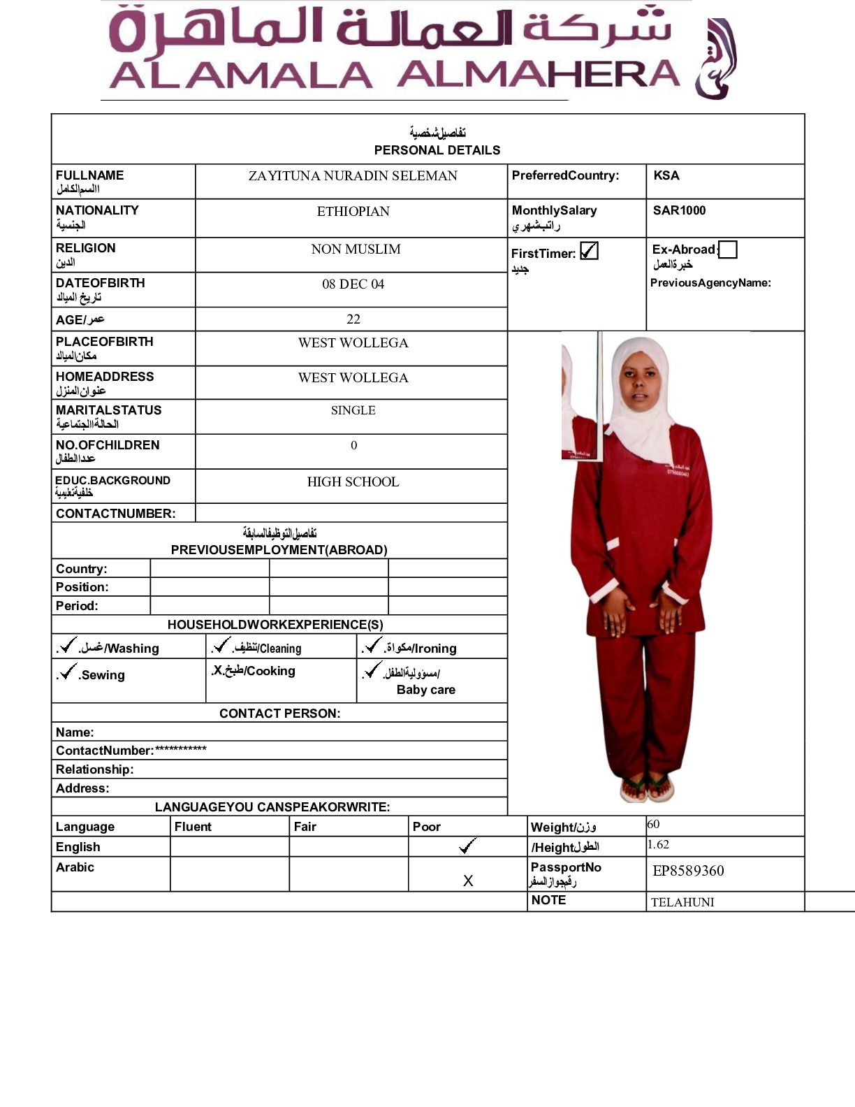 عاملة منزلية