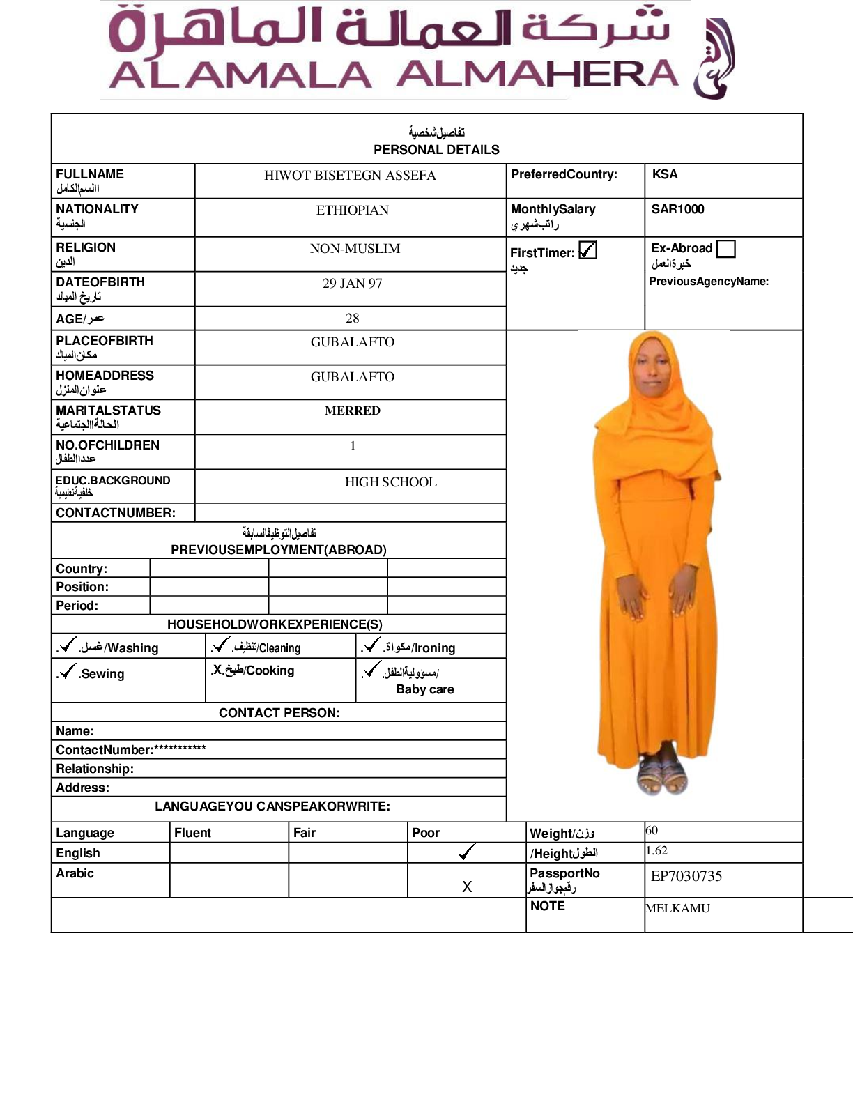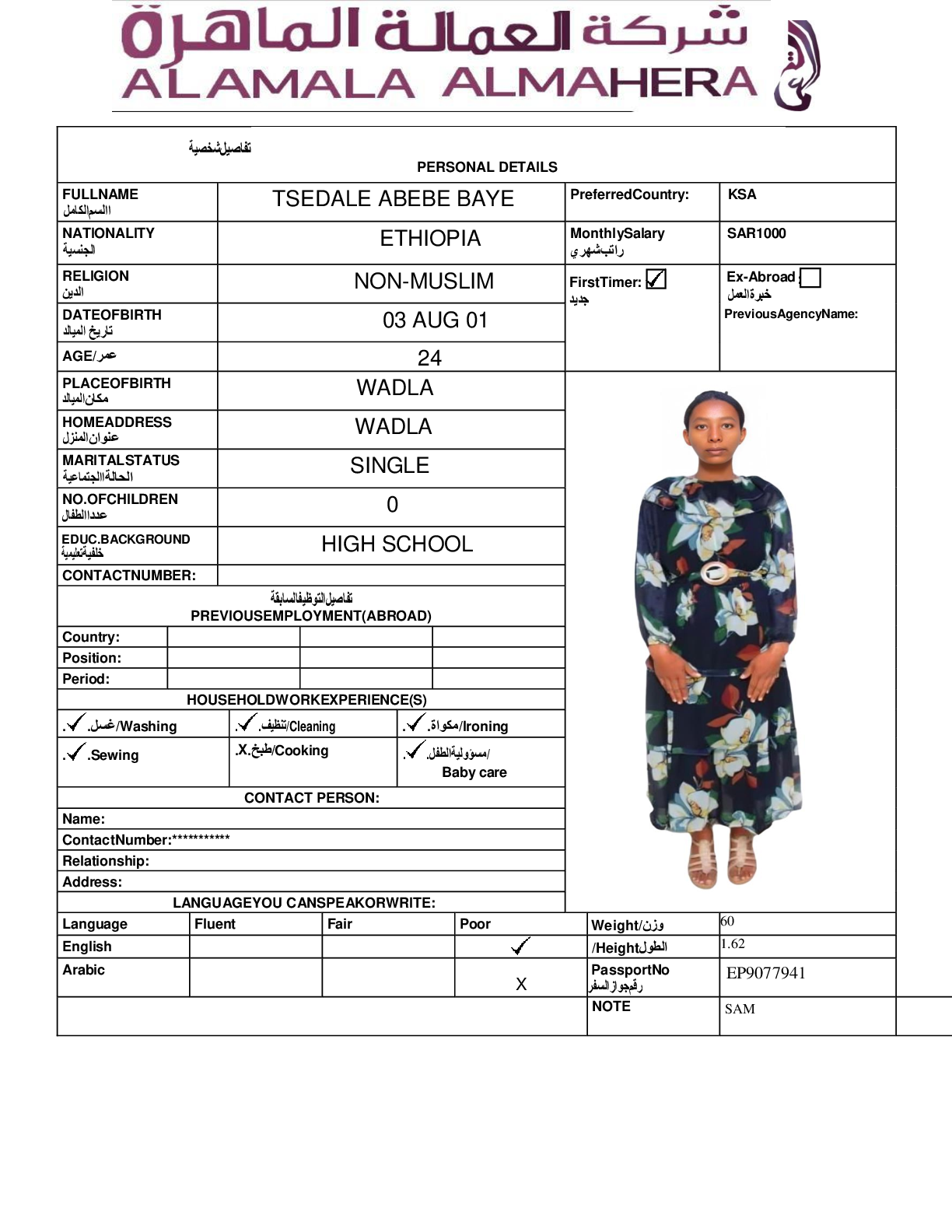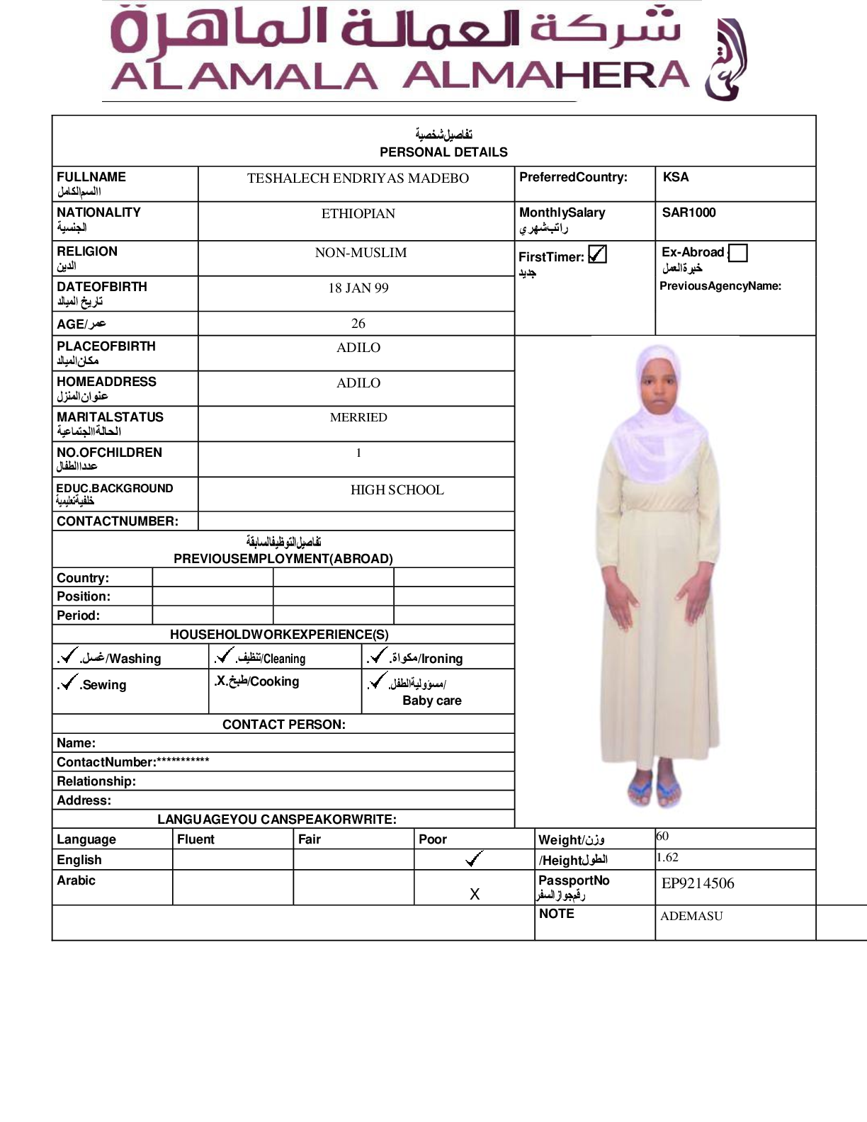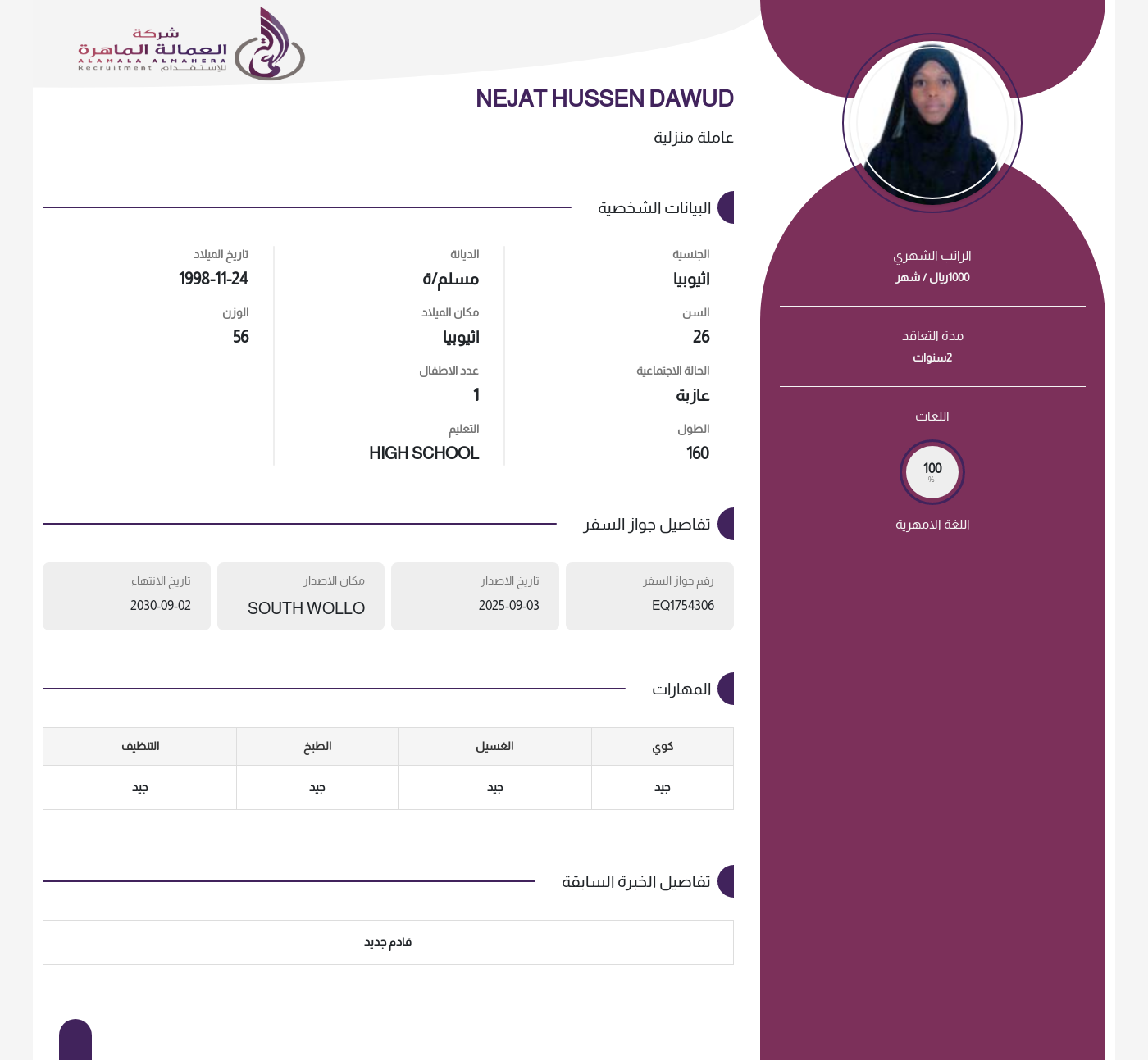 عاملة منزلية