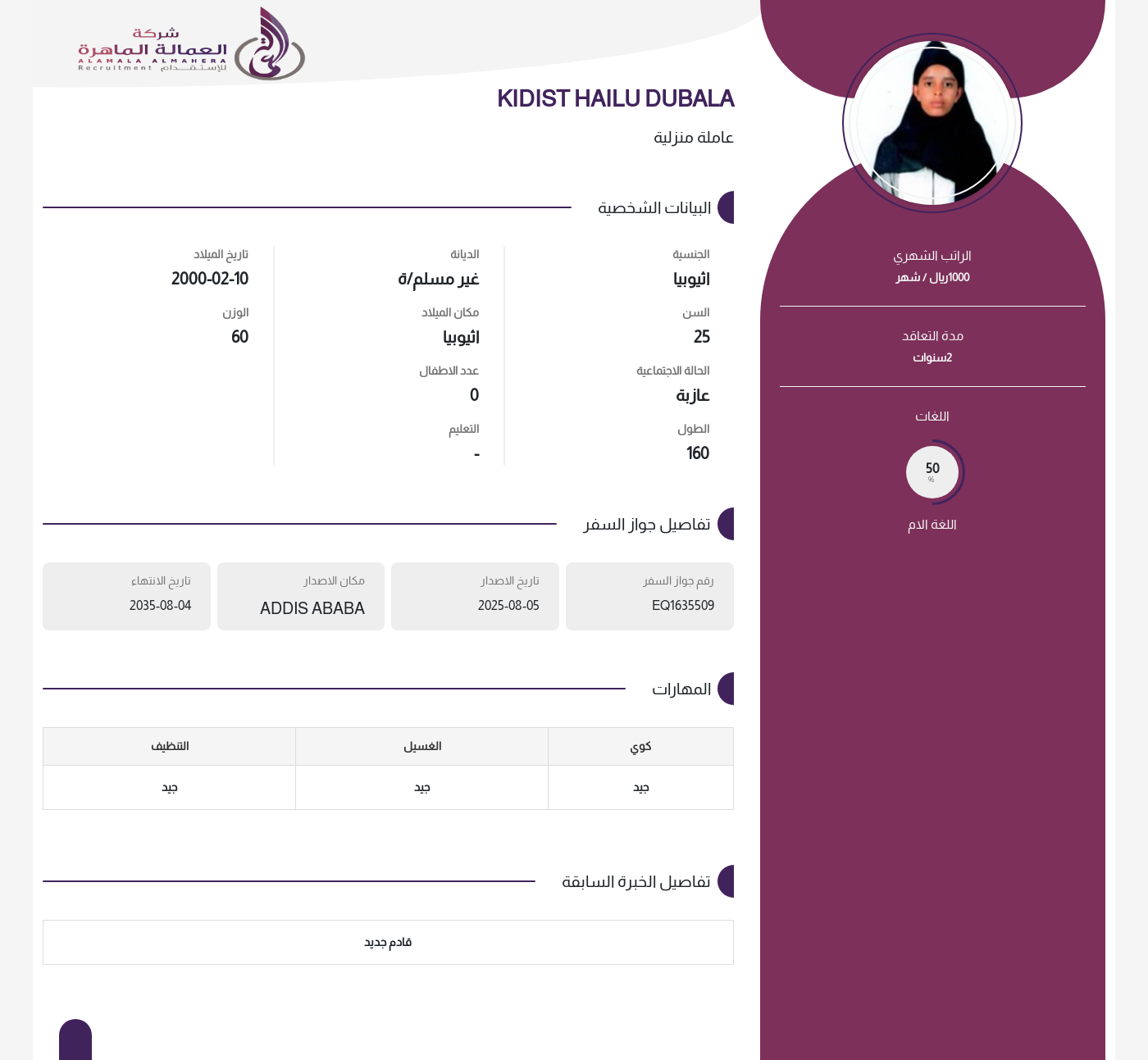 عاملة منزلية