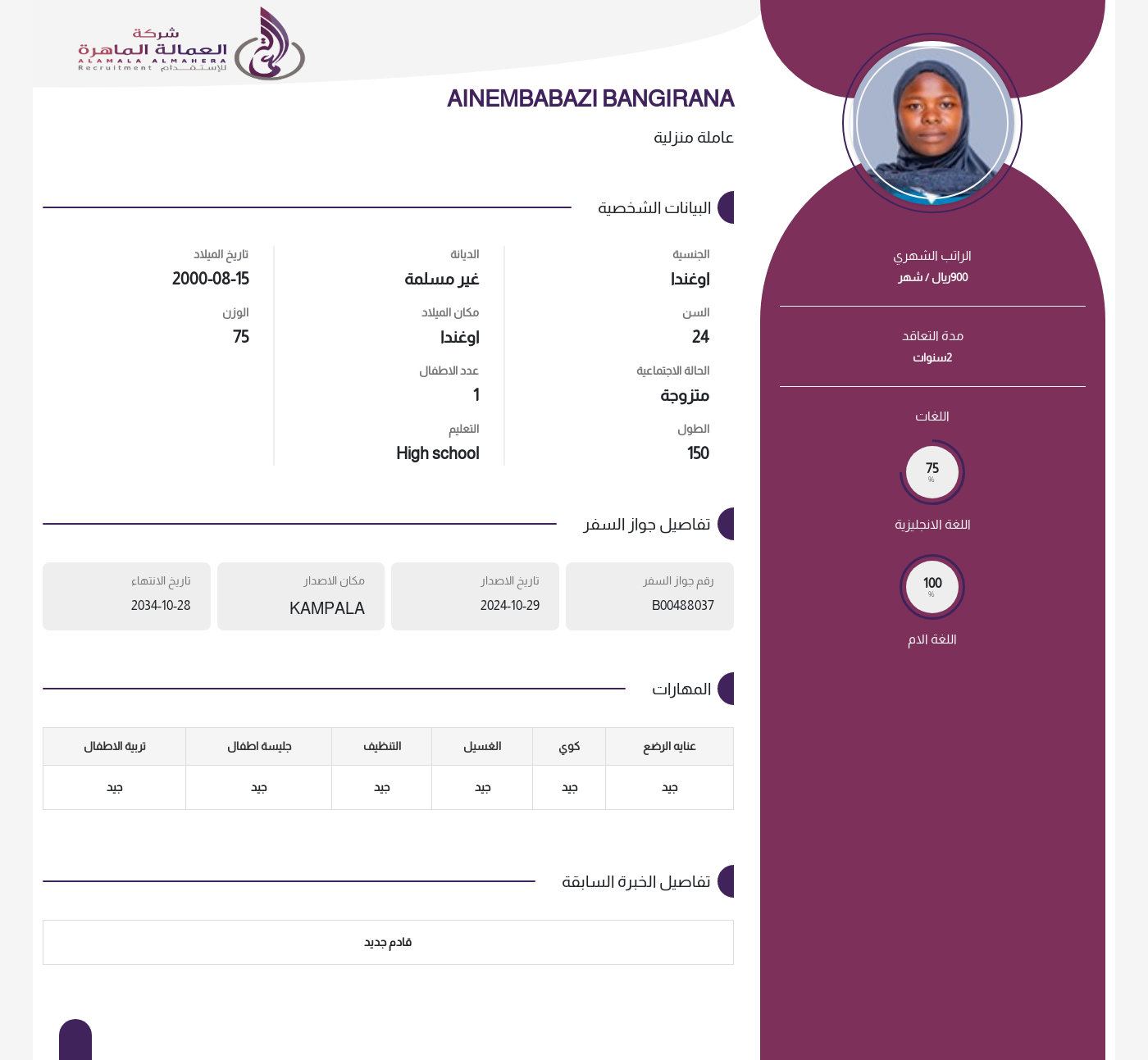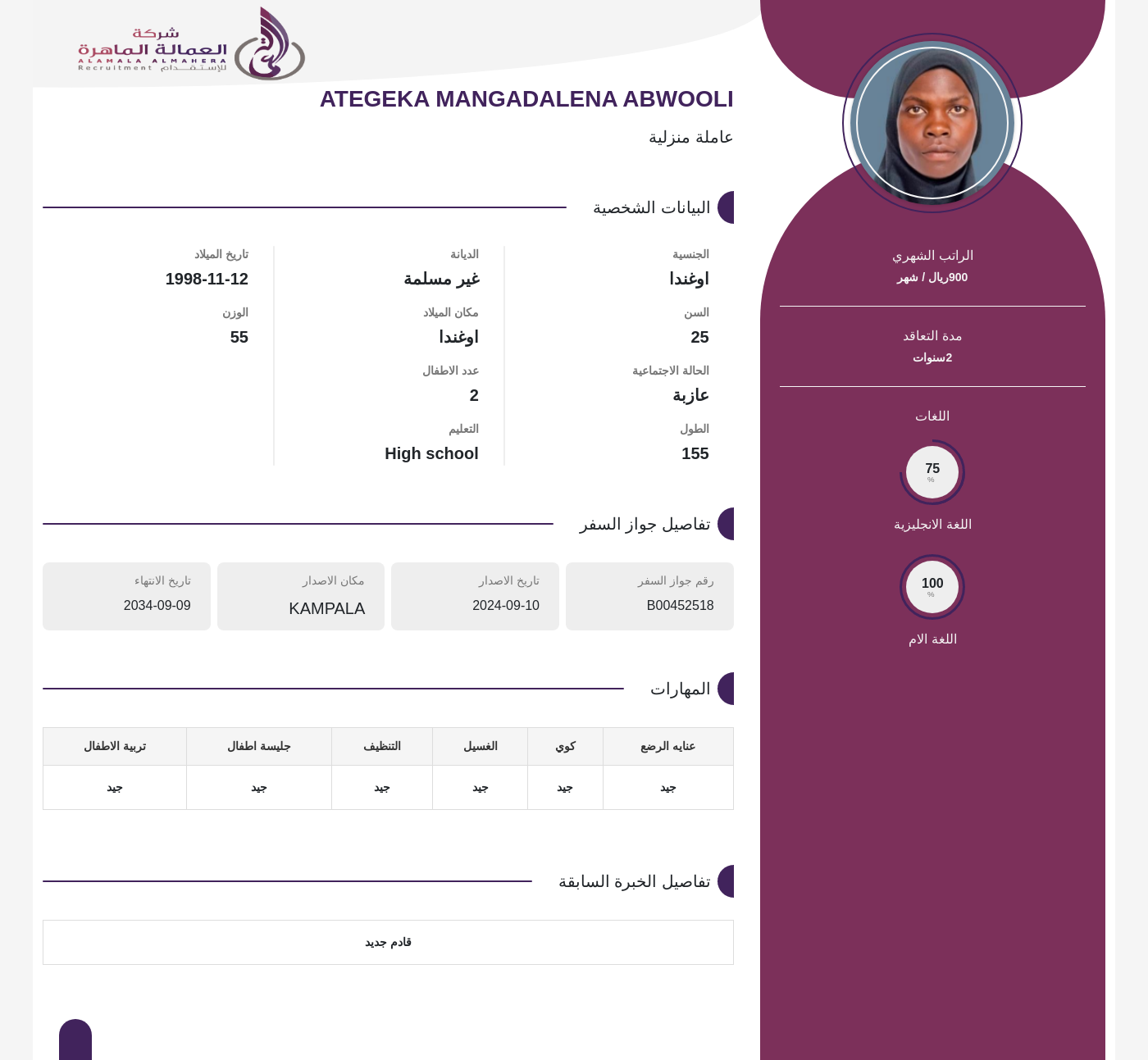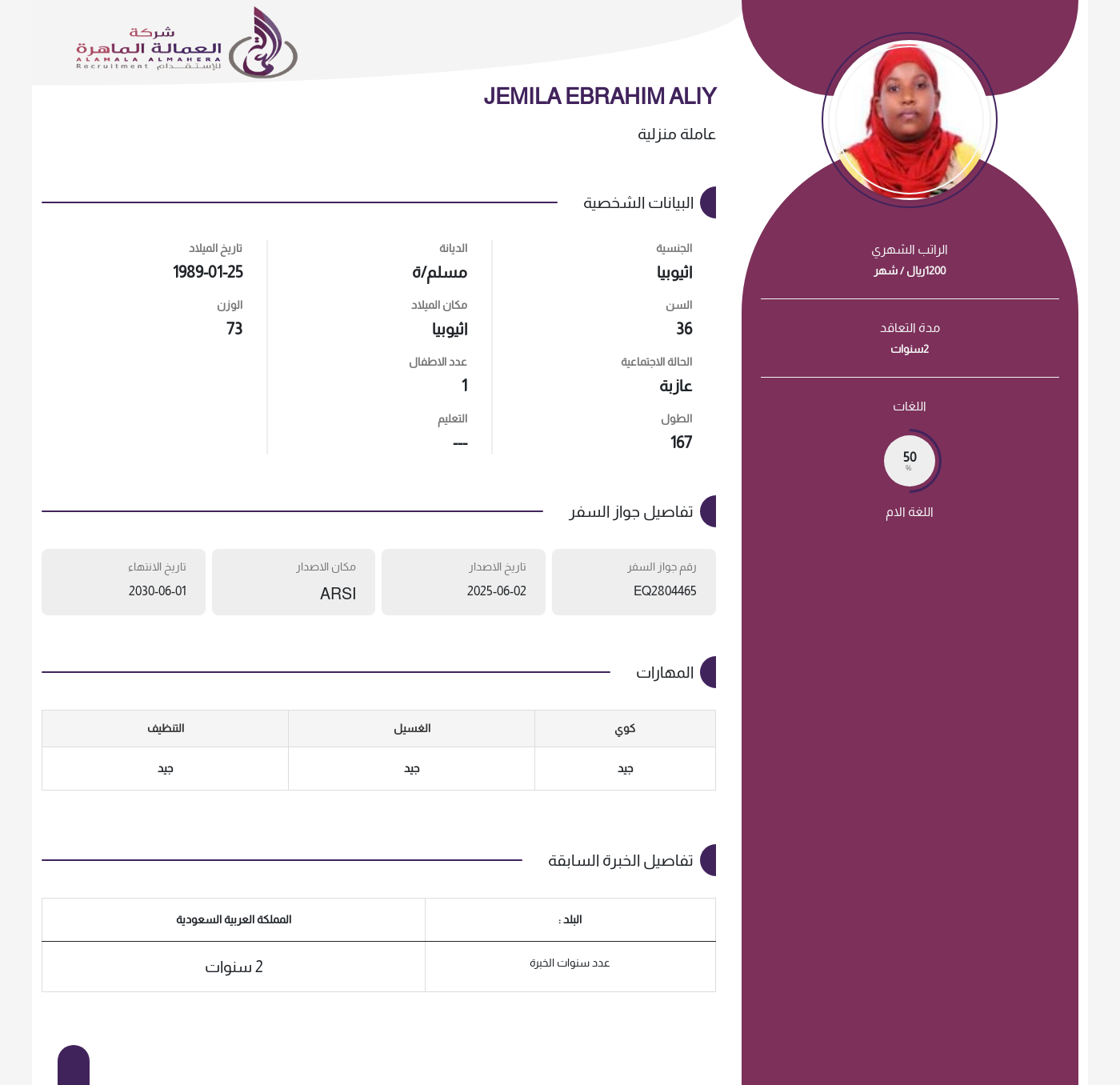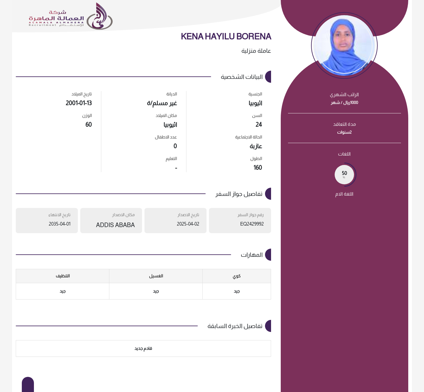عاملة منزلية