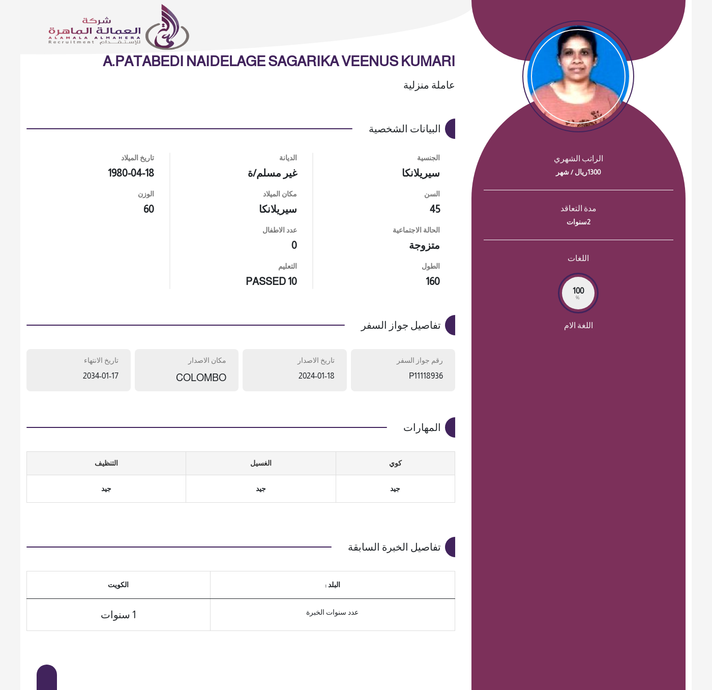 1300ريال / شهر