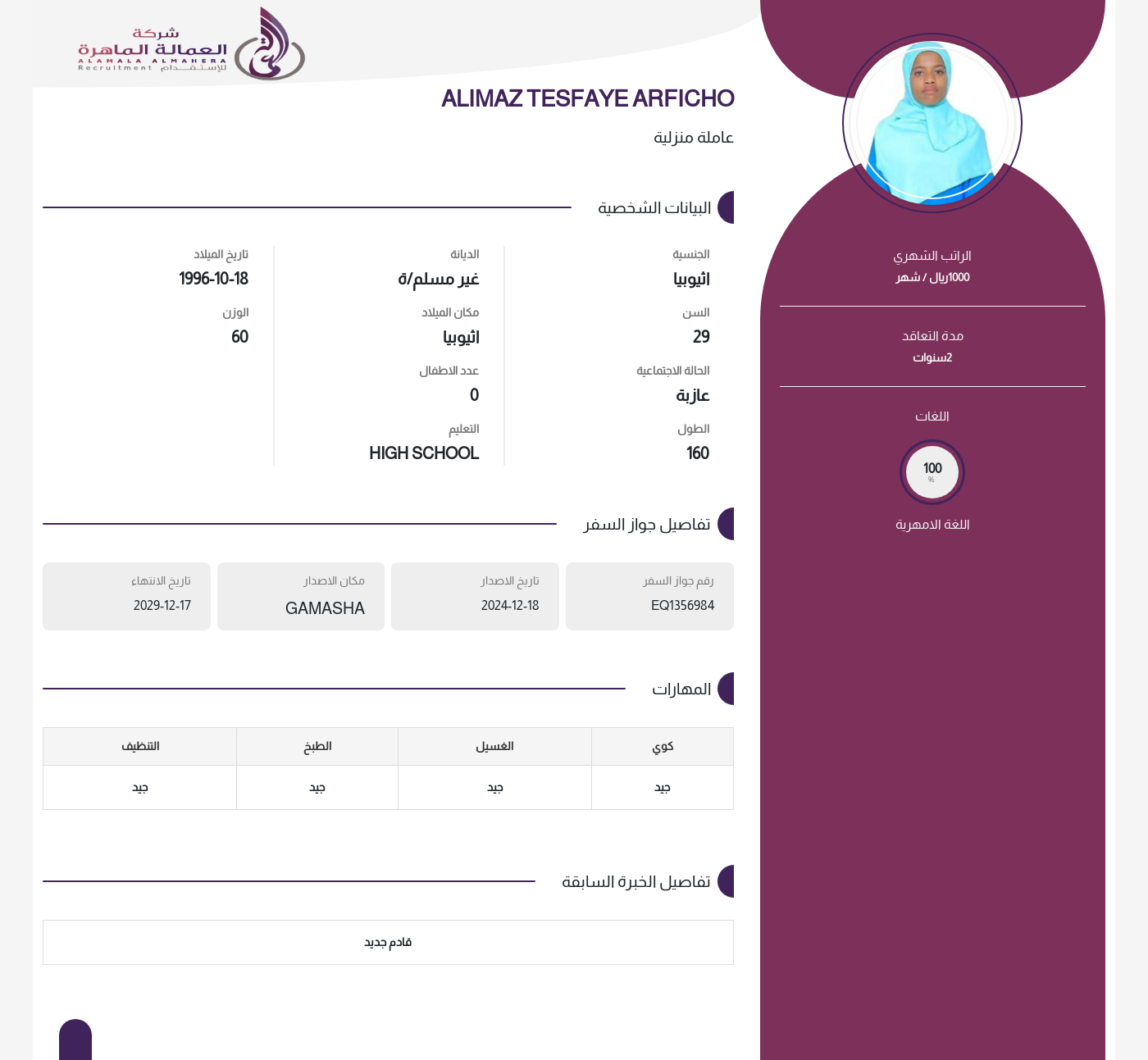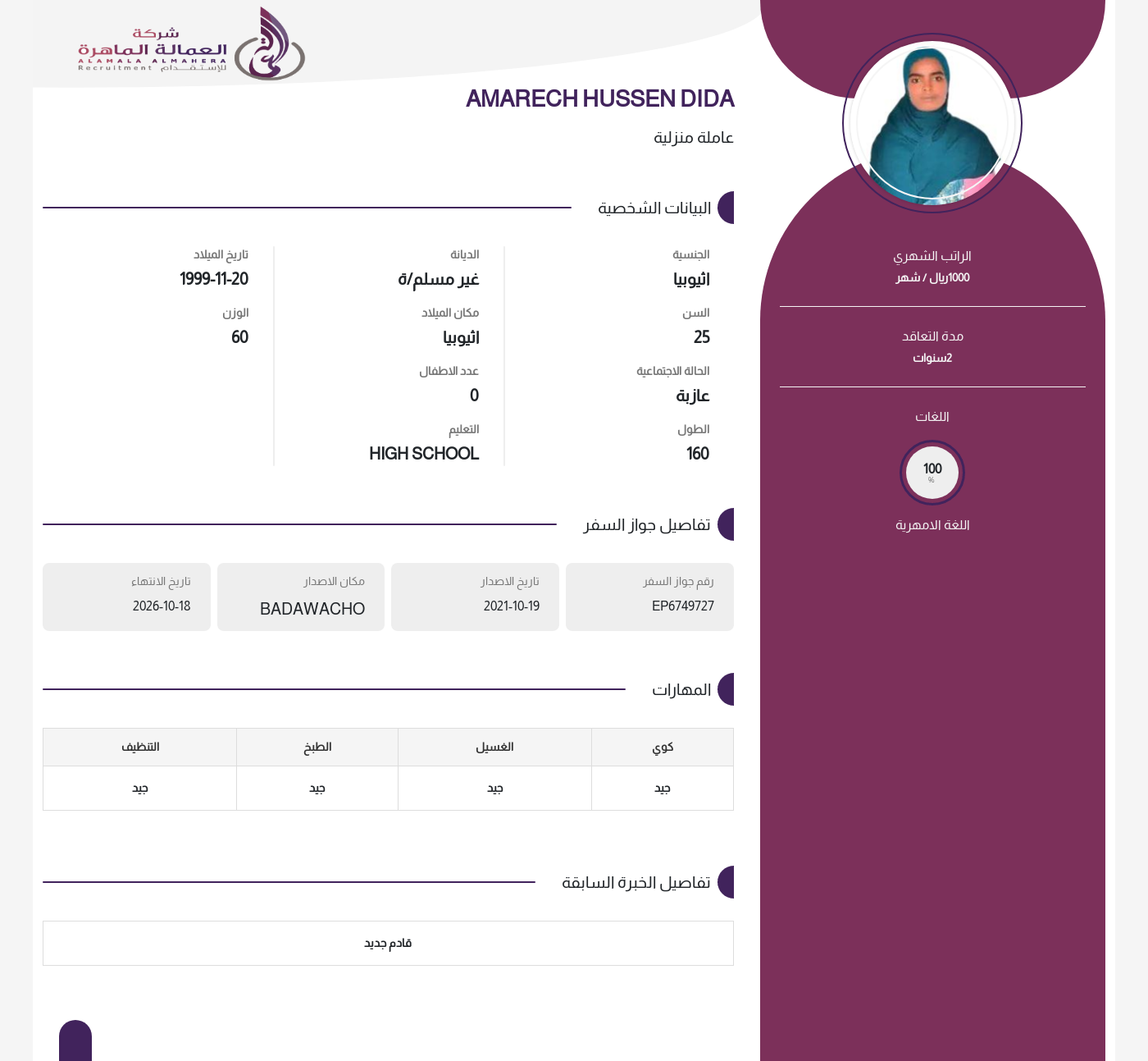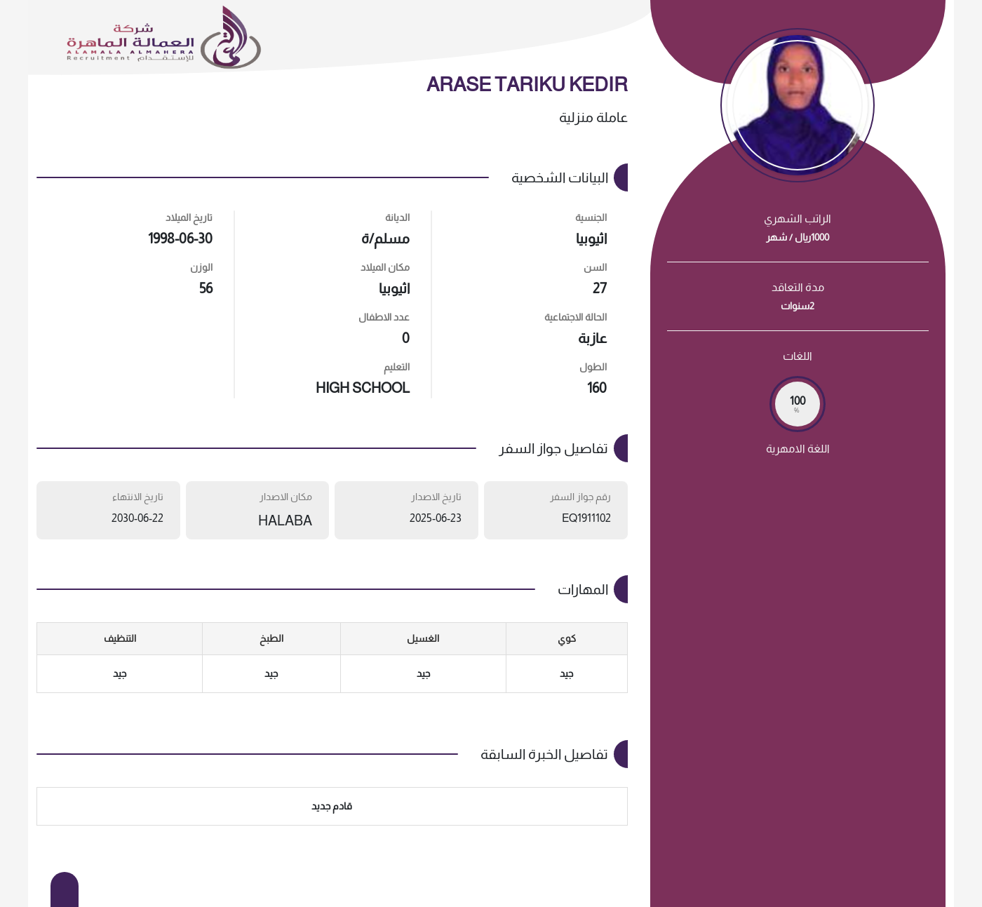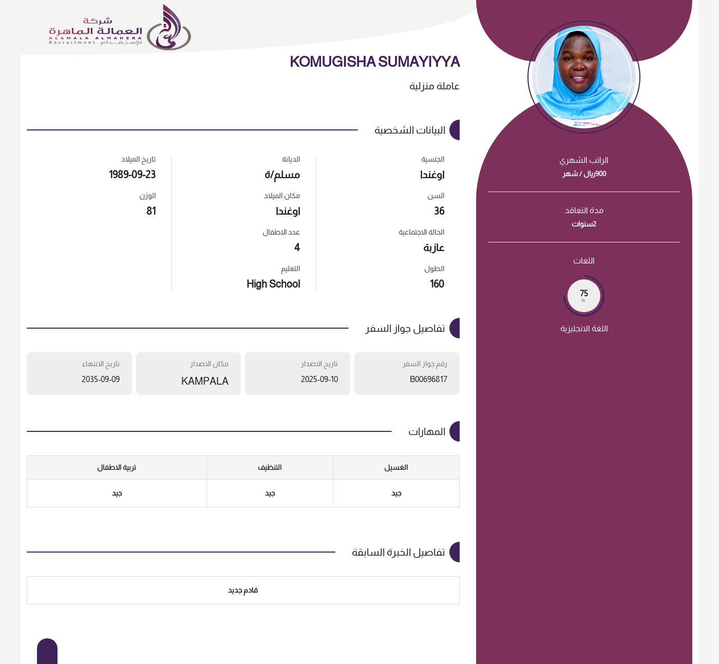 عاملة منزلية