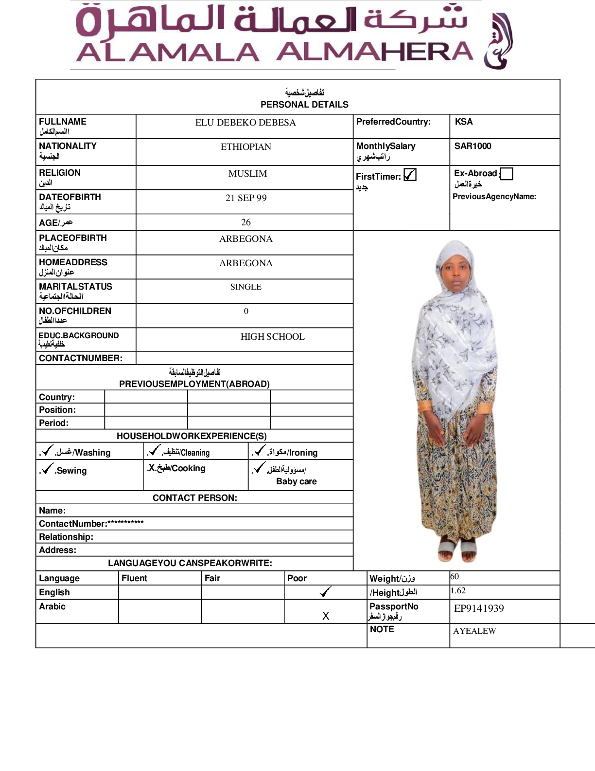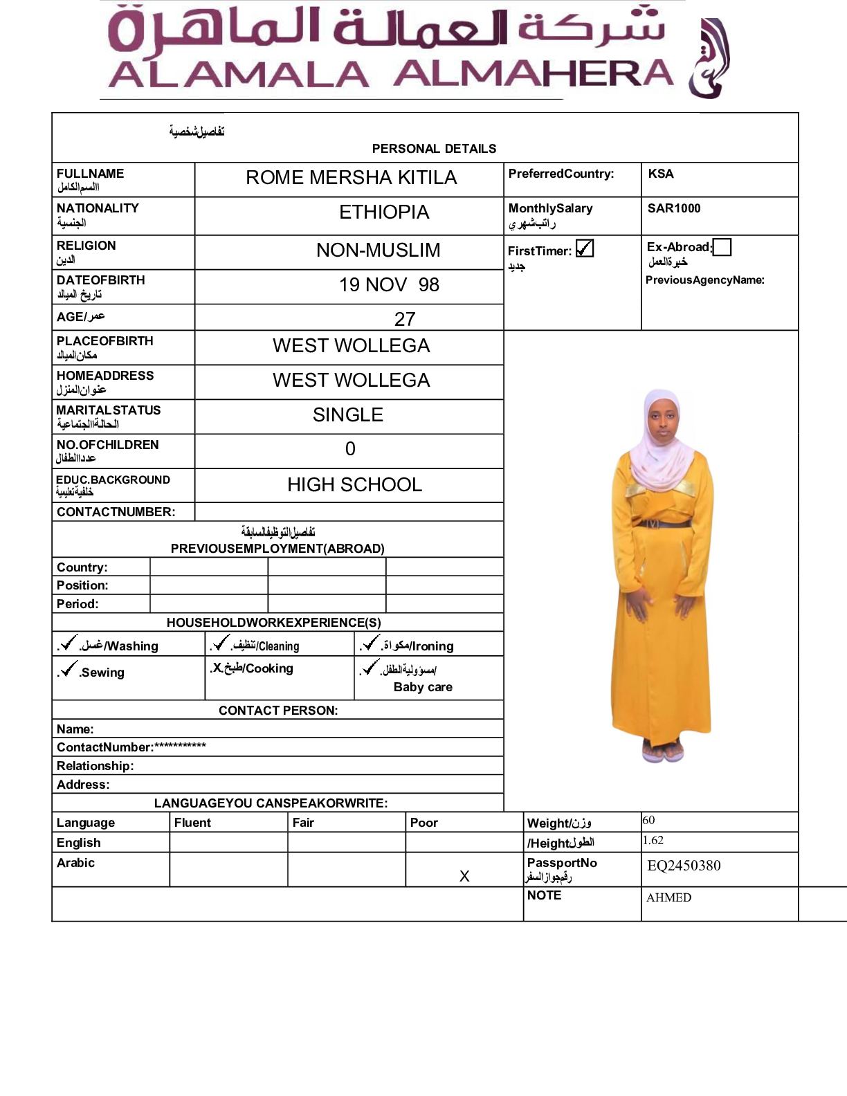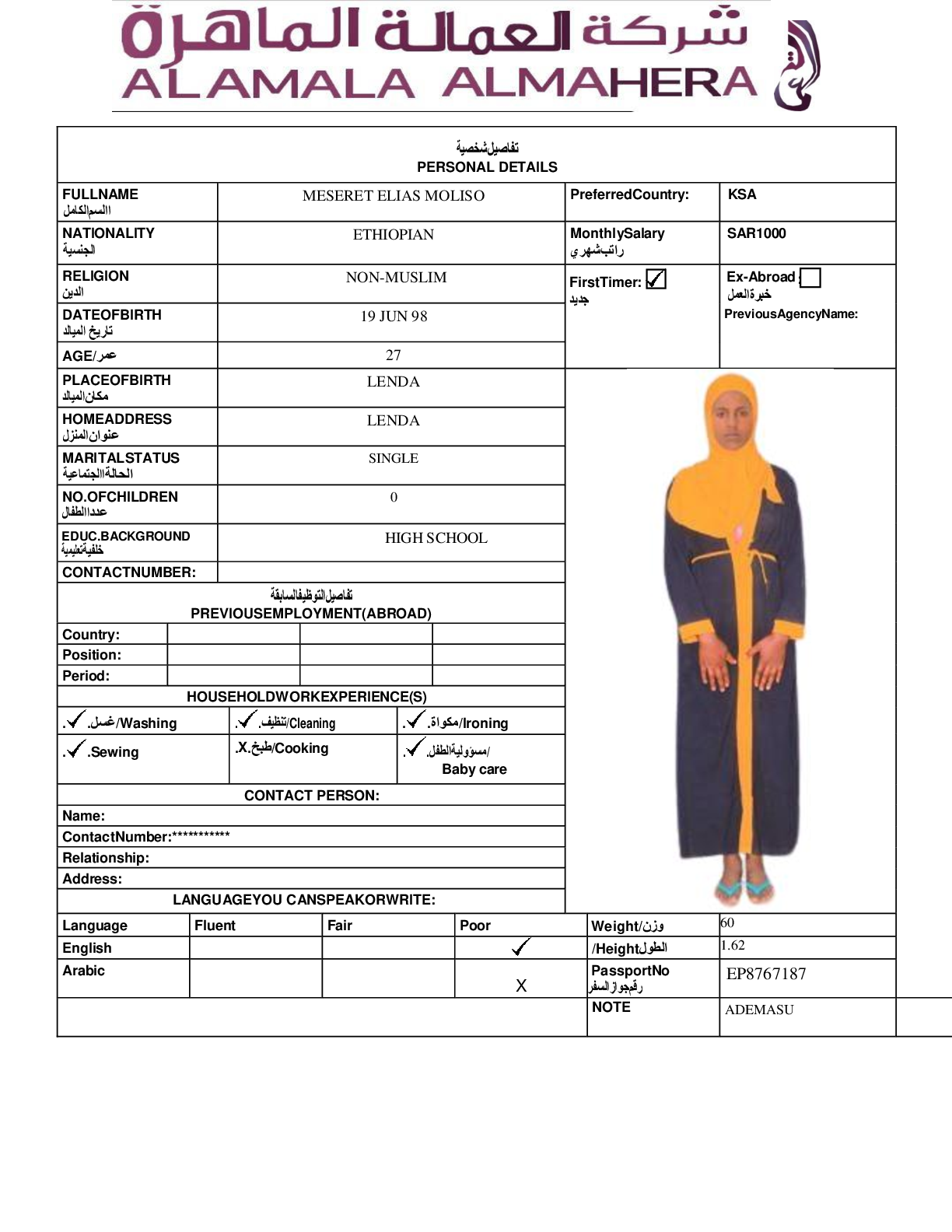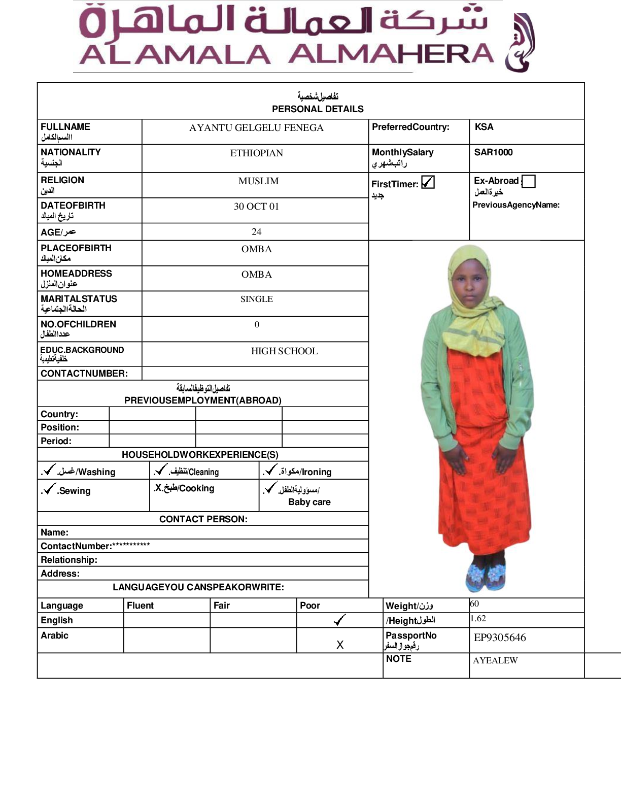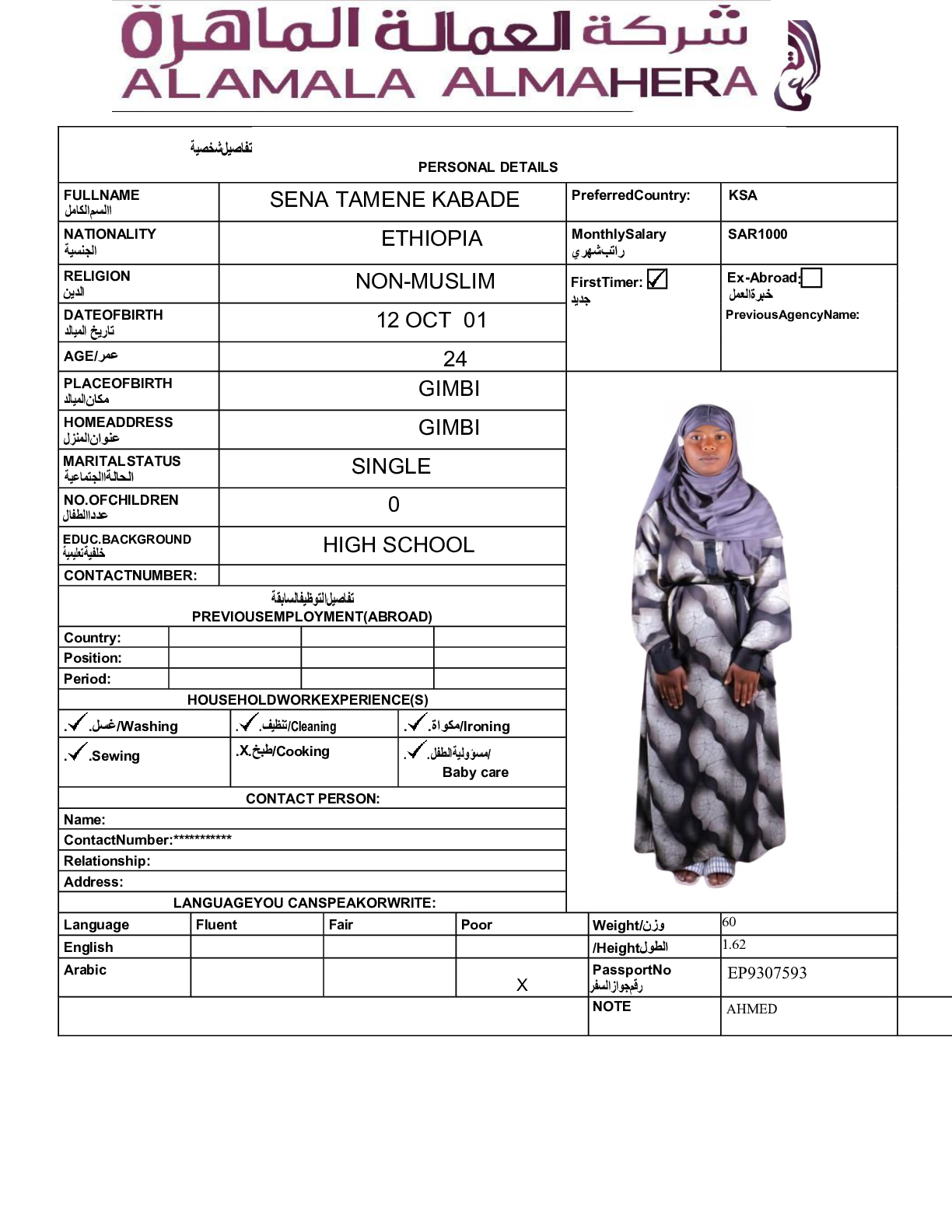عاملة منزلية