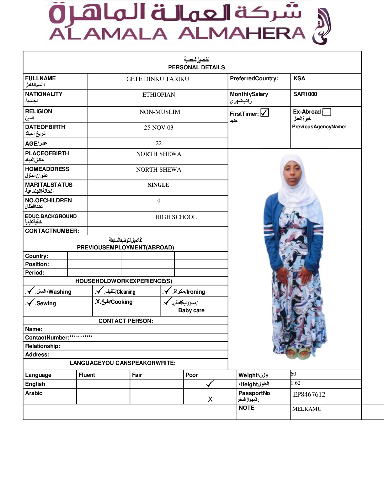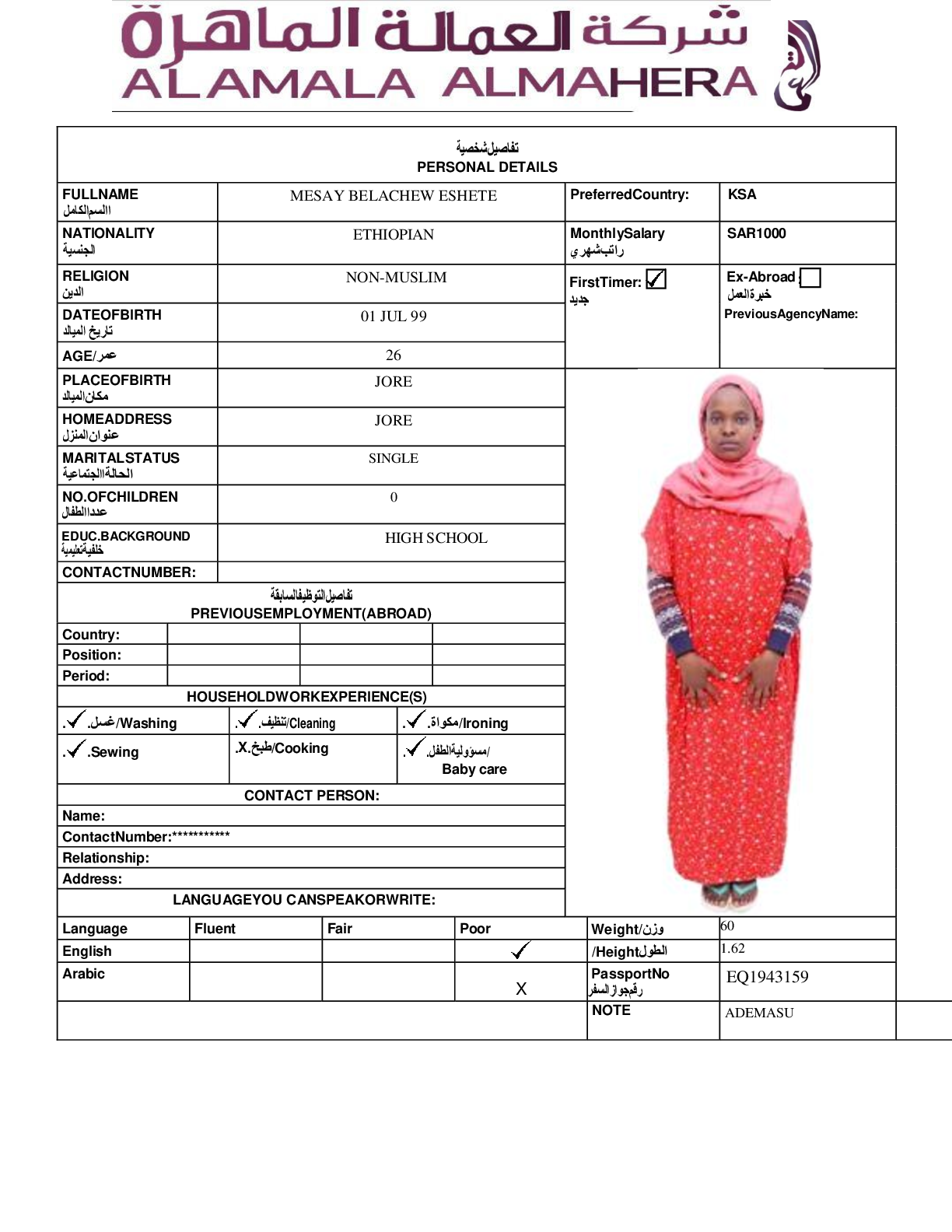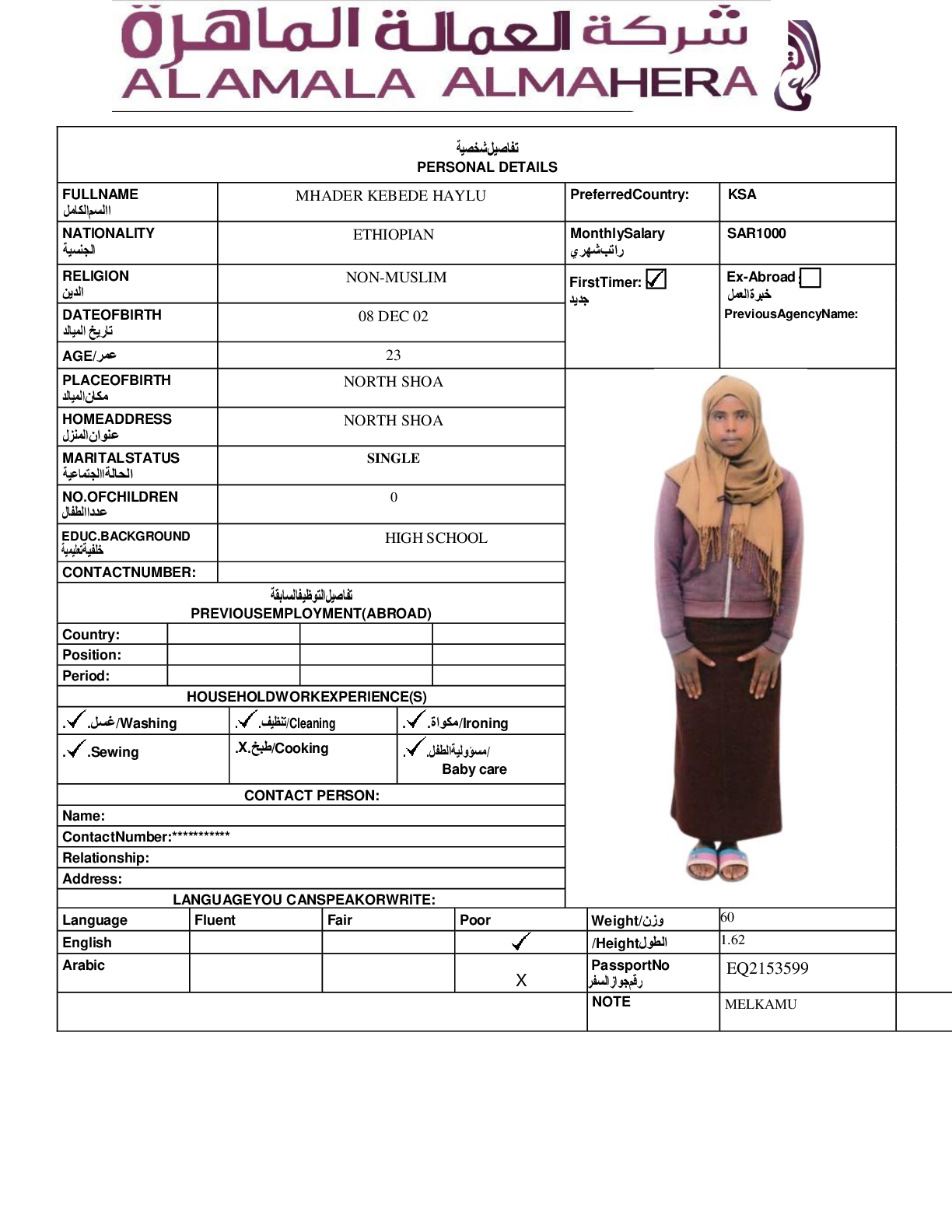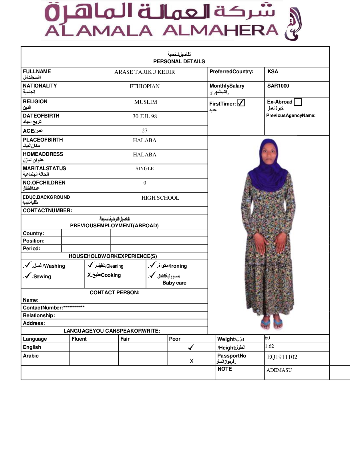 عاملة منزلية