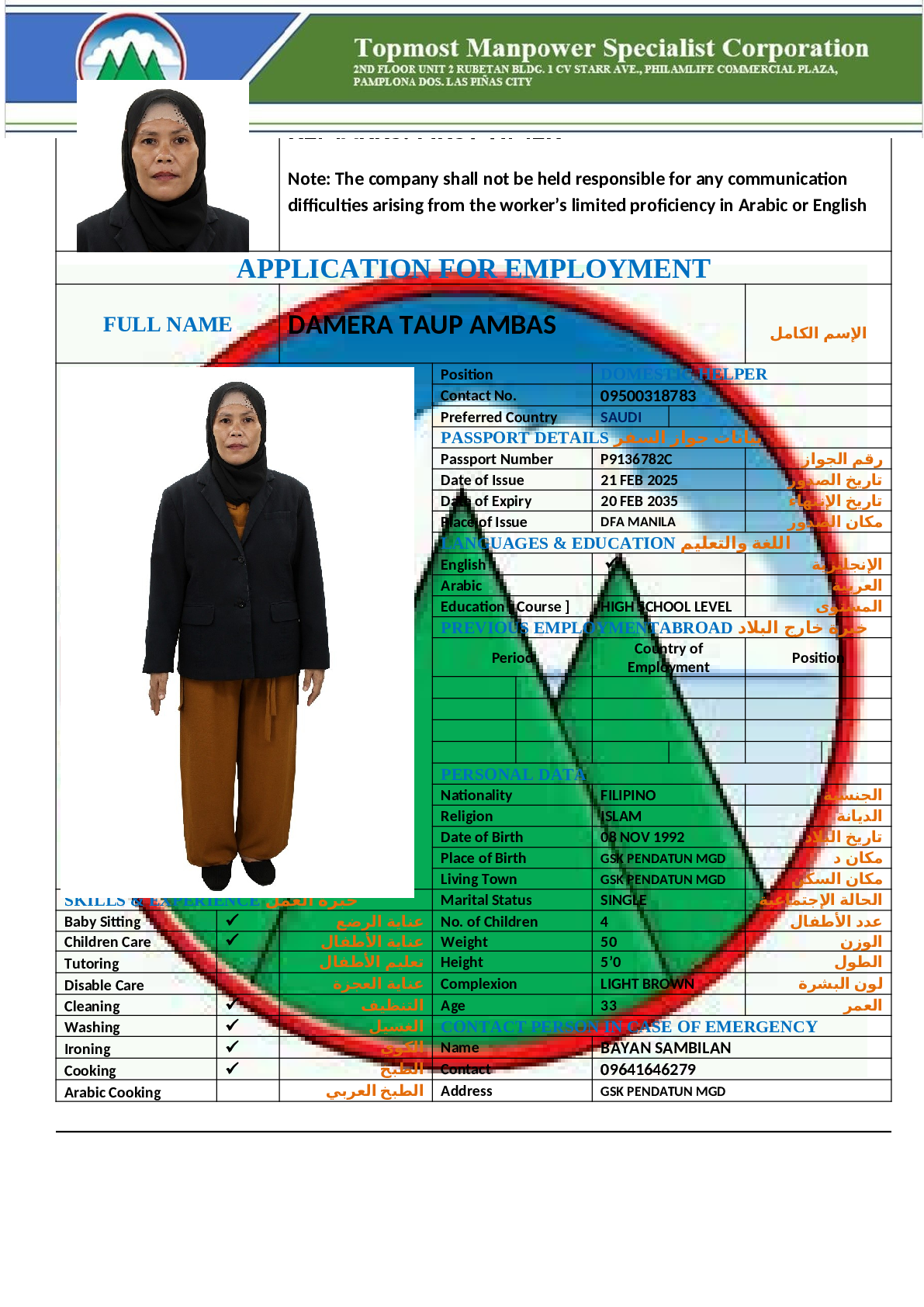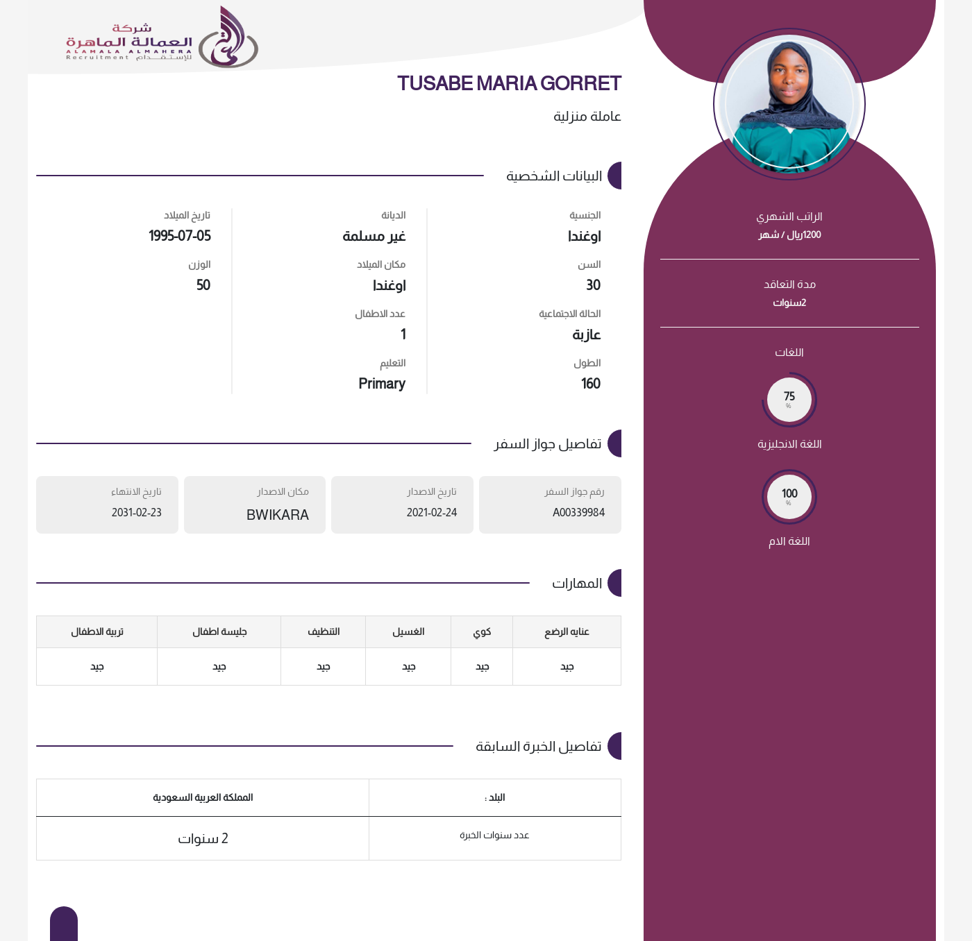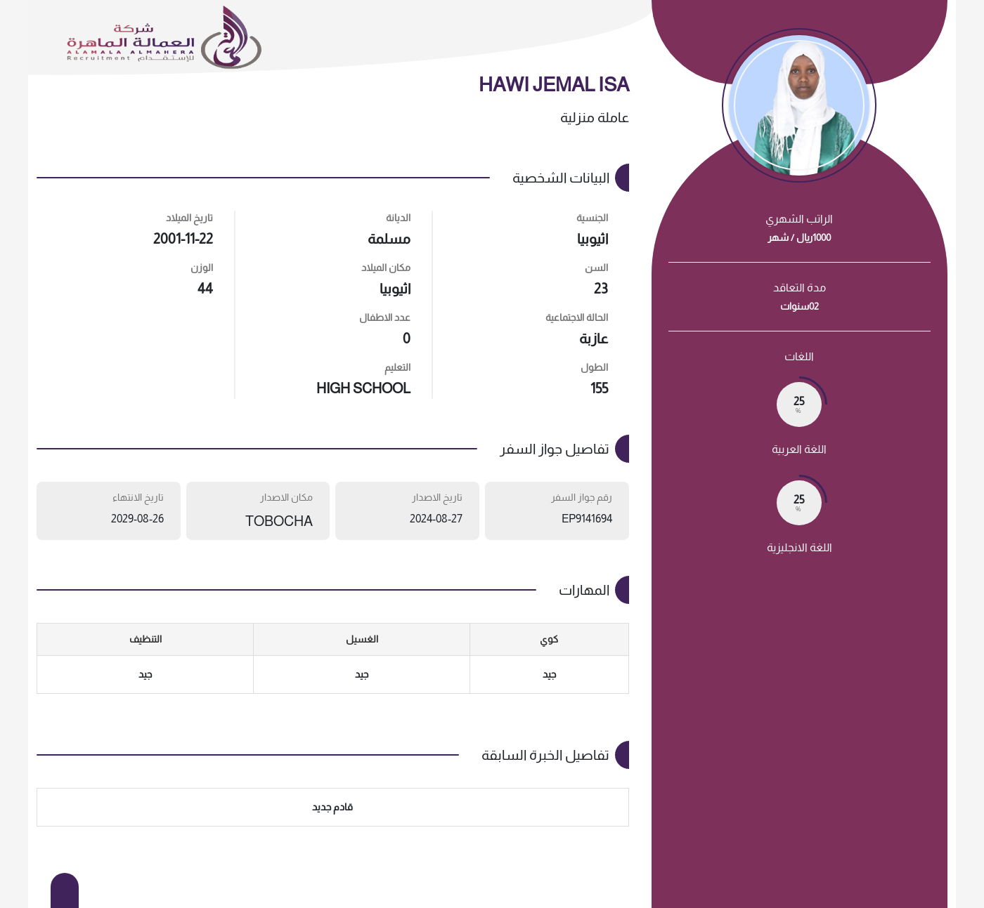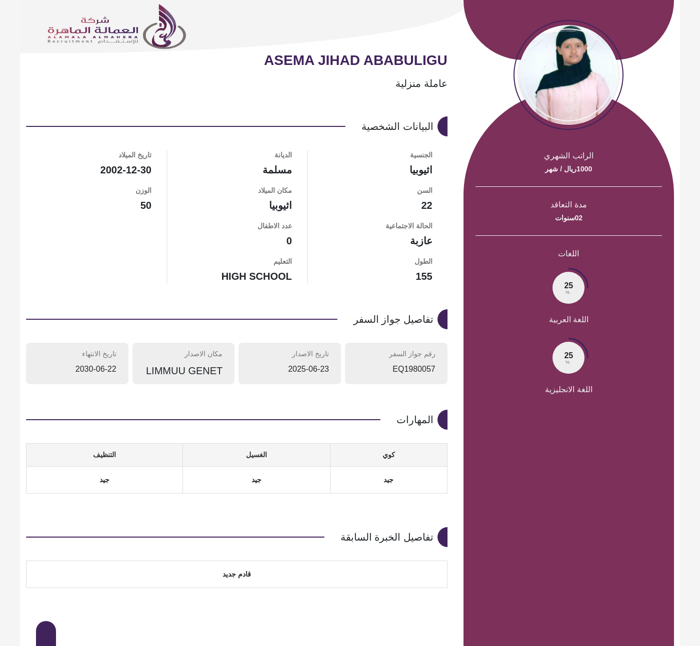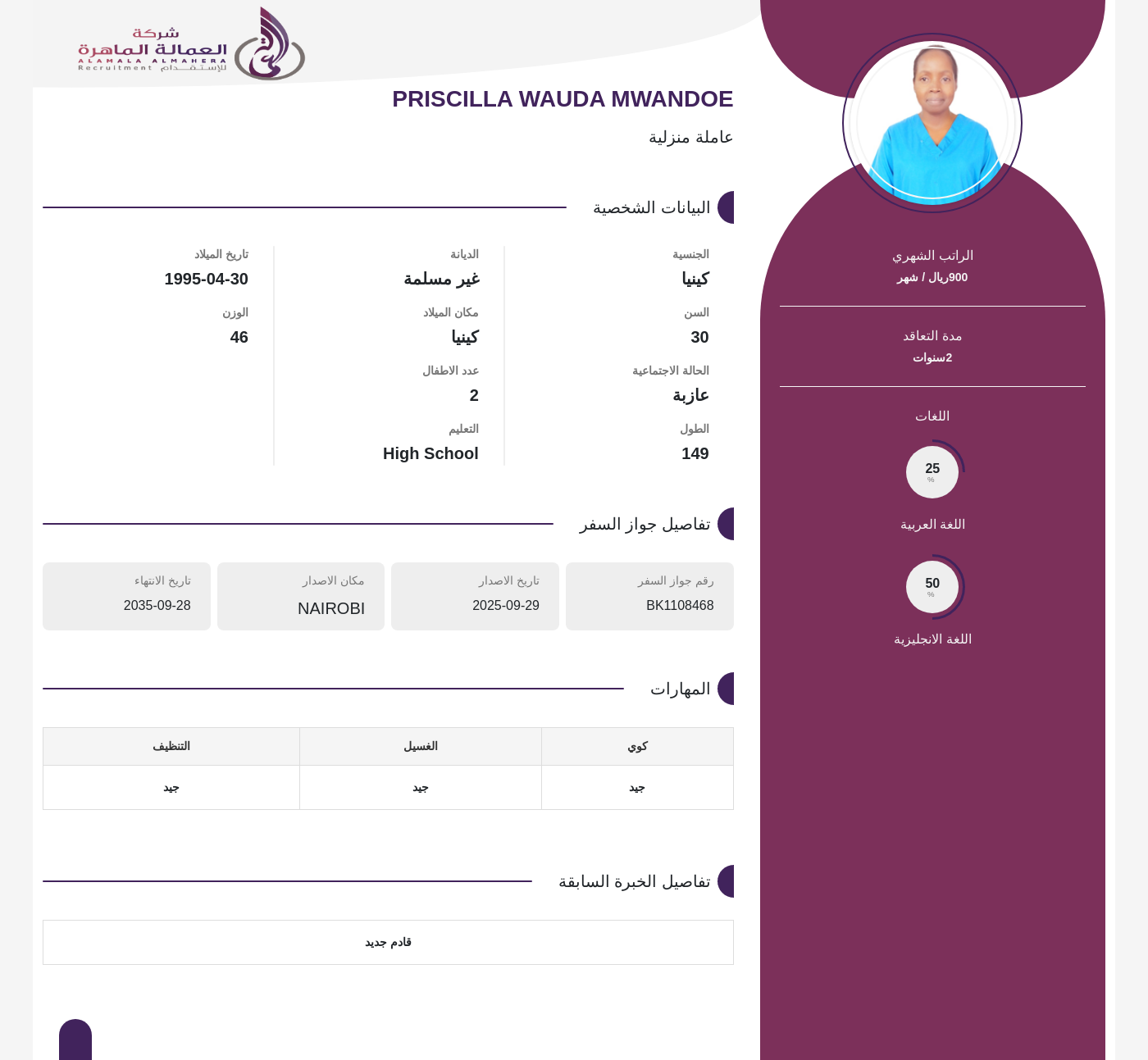 عاملة منزلية