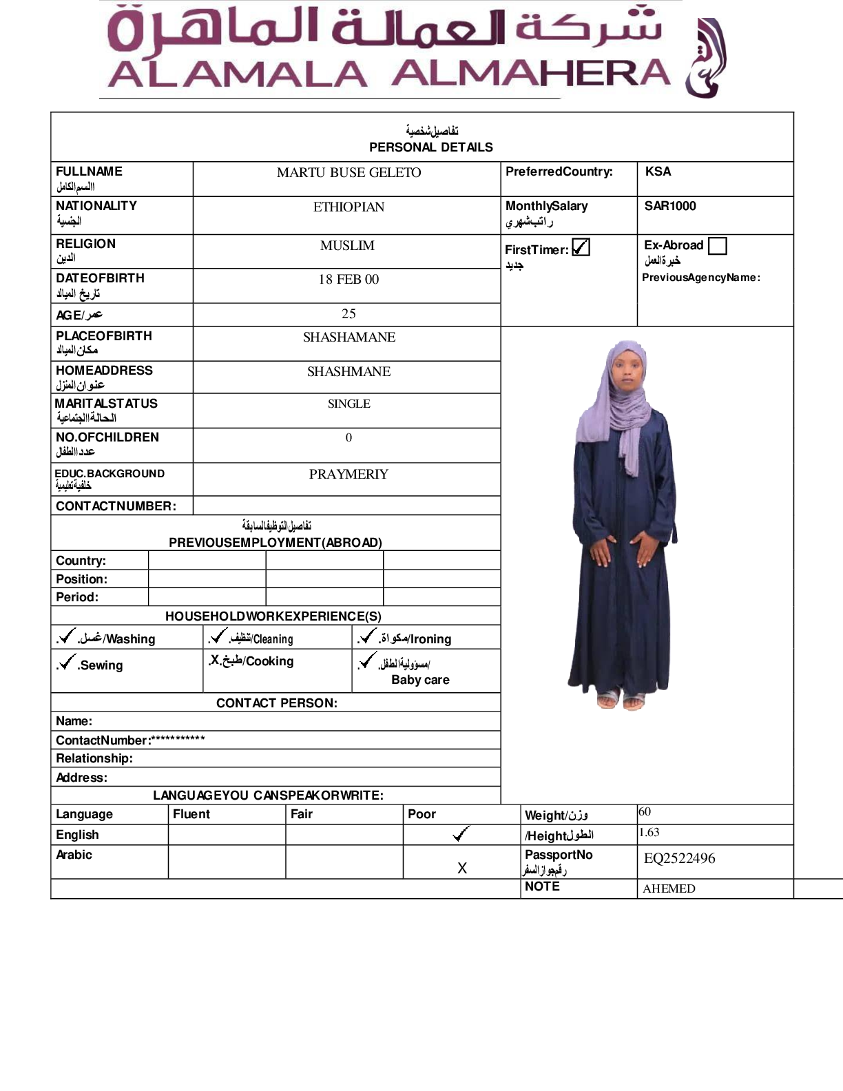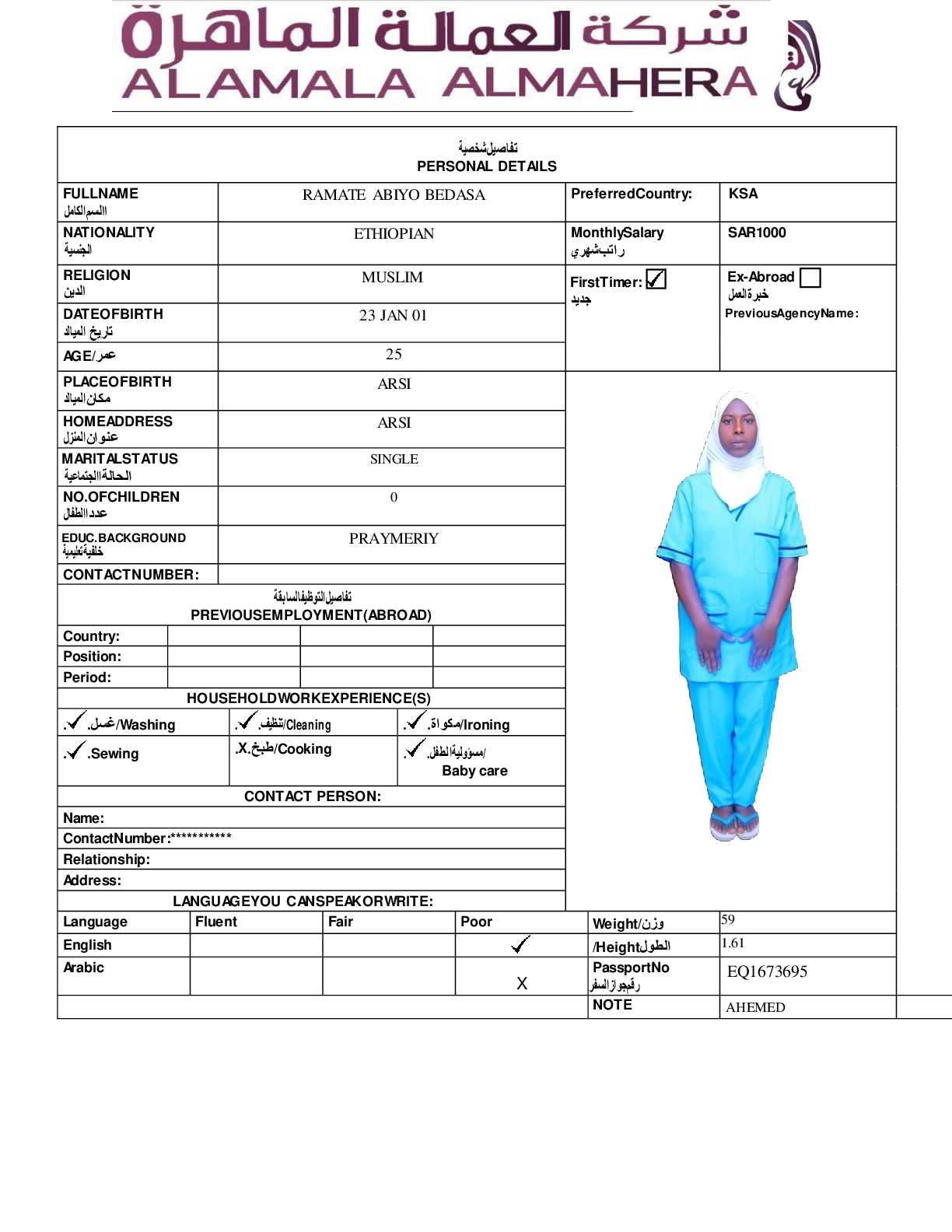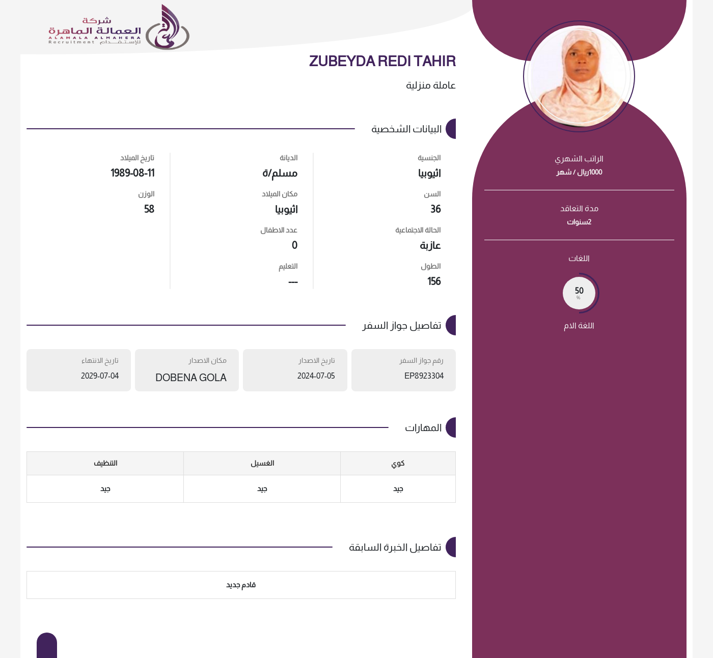 عاملة منزلية